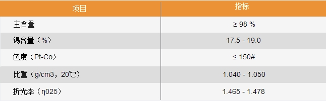 二月桂酸二丁基錫是一種有機錫添加劑,能溶于、、四氯化碳、、氯仿、丙酮、石油醚等有機溶劑和所有工業(yè)增塑劑,不溶于水。市面上流 通的高沸點多用途有機錫催化劑二月桂酸二丁基錫通常都是經(jīng)過特殊液化處理的,常溫下為淺黃色或無色油狀液體,低溫成白色結晶體,可用于聚氯乙烯塑料助劑 ,具有優(yōu)良的潤滑性、透明、耐候性。耐硫化物污染較好。在軟質透明制品中作穩(wěn)定劑,在硬質透明制品中作高效潤滑劑,還可用作丙烯酸酯橡膠和羧基橡膠交聯(lián)反應、聚氨酯泡沫塑料合成及聚酯合成的催化劑,室溫硫化硅橡膠催化劑